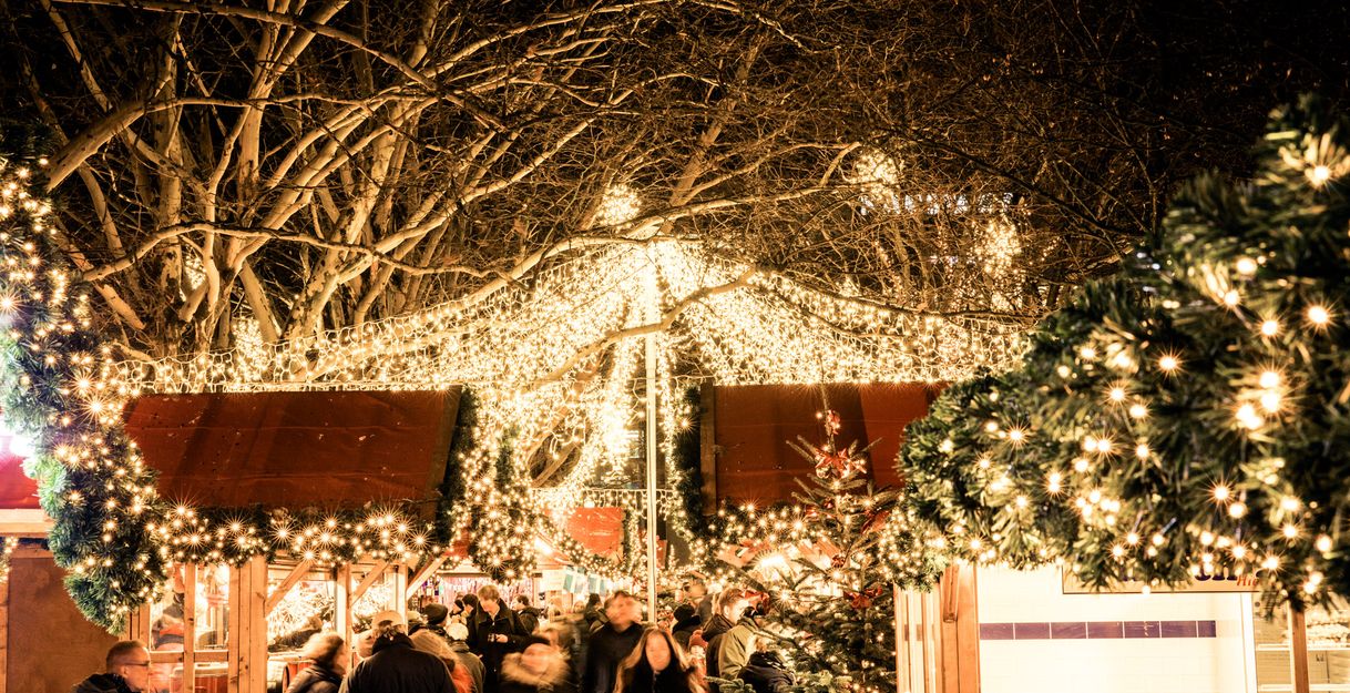 Mit frisch überarbeitetem Auftritt präsentiert sich der Weihnachtsmarkt auf dem Holstenplatz und lockt die Besucher*innen traditionell zum winterlichen Bummel bei ausgewogenem Mix aus Kunsthandwerk, Punsch und Leckerbissen.